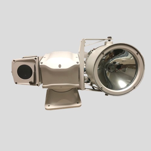 探照燈云臺攝像機采用2000W的疝氣白光燈、200萬20倍5.4-108mm的一體化機芯和高清網(wǎng)絡(luò)云臺集合而成,照明距離遠達800米,廣泛應(yīng)用于室外全黑環(huán)境,比如監(jiān)獄外圍、礦區(qū)等。